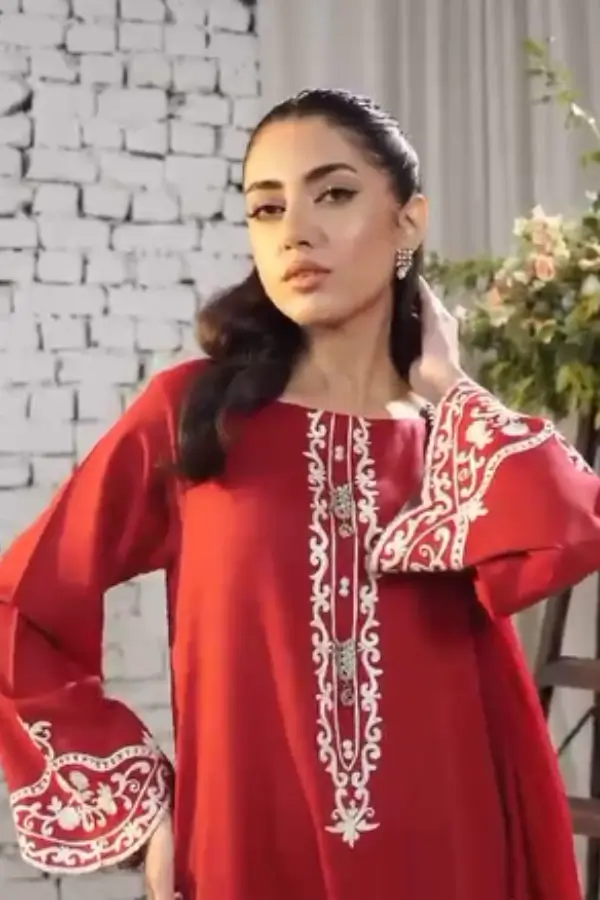 - Cutwork embroidery on the sleeves and fancy button detailing on the neckline